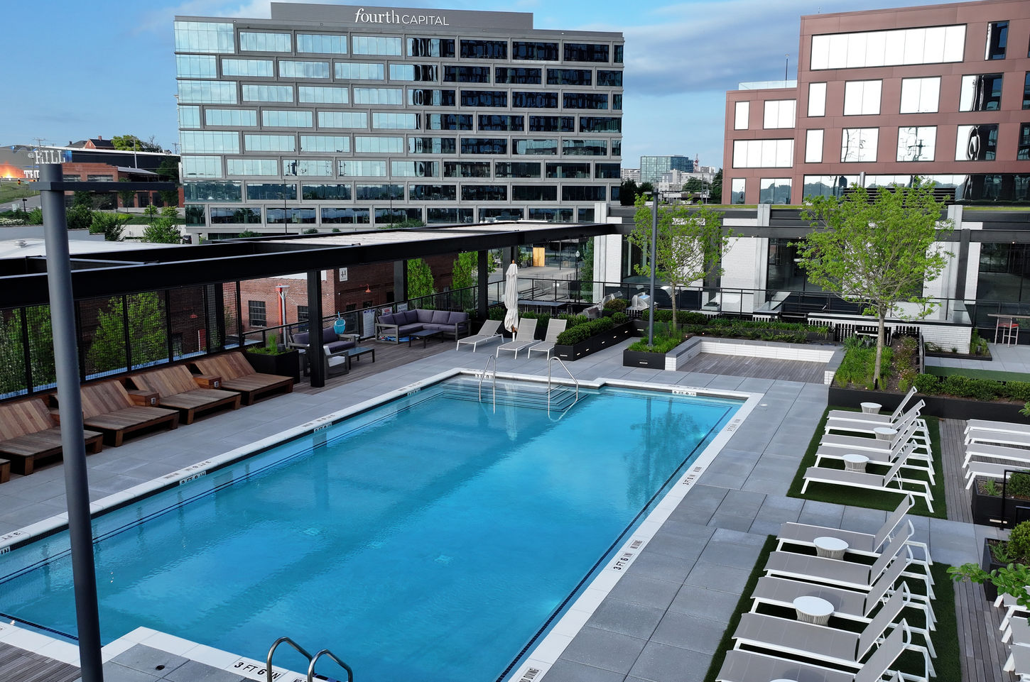 The project capitalizes on its prominent location overlooking the downtown core and position as a gateway to the city from the east. The development serves as a major destination along the Metro greenway system that connects it to Riverfront Park and Ascend Amphitheater to the north and the Rolling Mill Hill district to the south. The site incorporates multiple levels of active pedestrian plaza and greenway activation which permeates throughout the site.