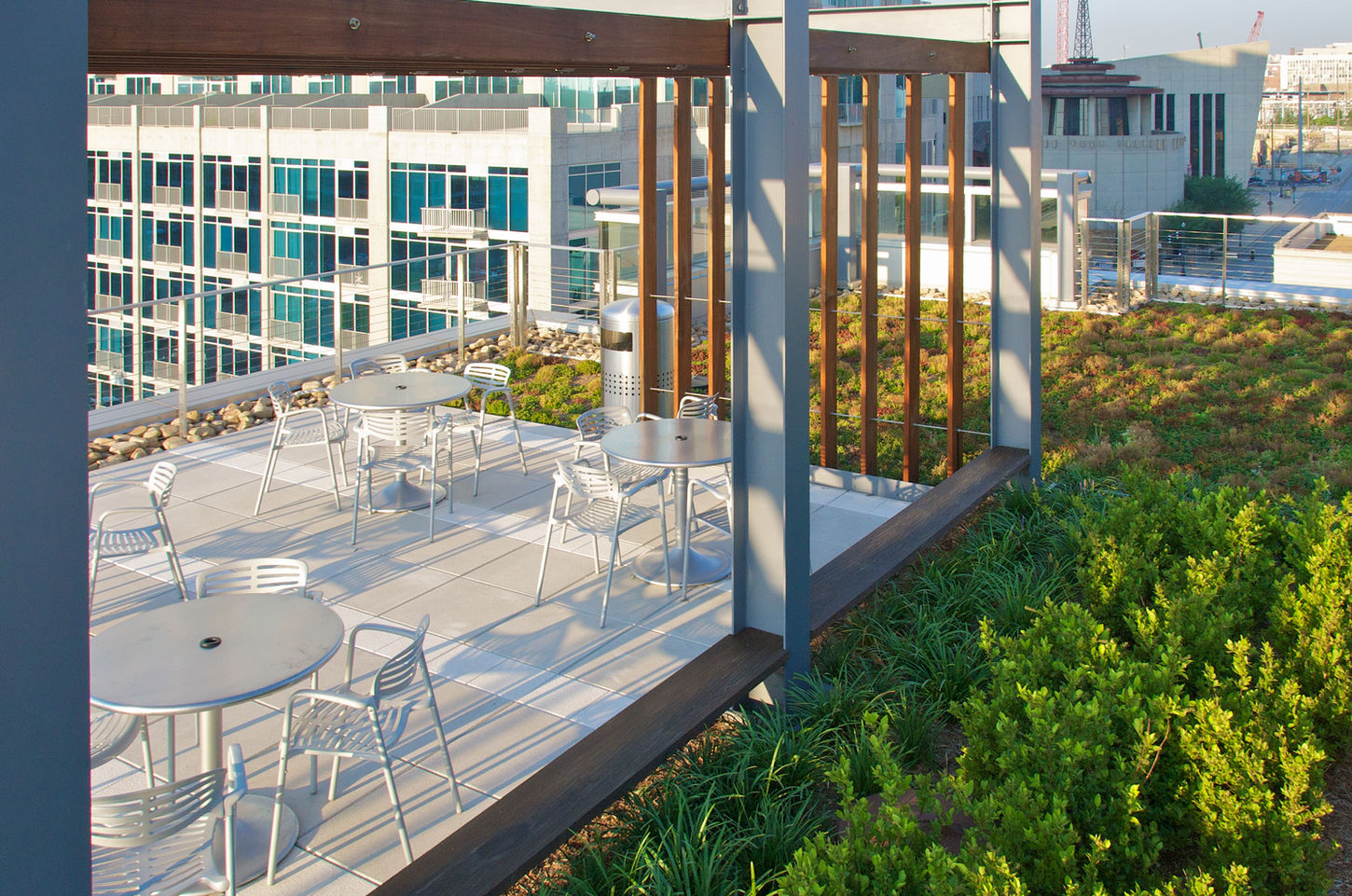 HPI was responsible for a 29,000 SF green roof with gathering areas that incorporate reflective pavers to reduce heat gain. The site provides all parking in a structured garage. The landscaping is a native and adapted species plant palette with a water efficient irrigation system